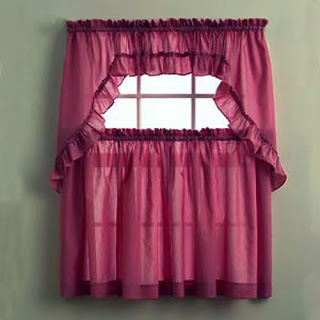 Lovely tier curtian with matching swag and valance on white sheer voile.